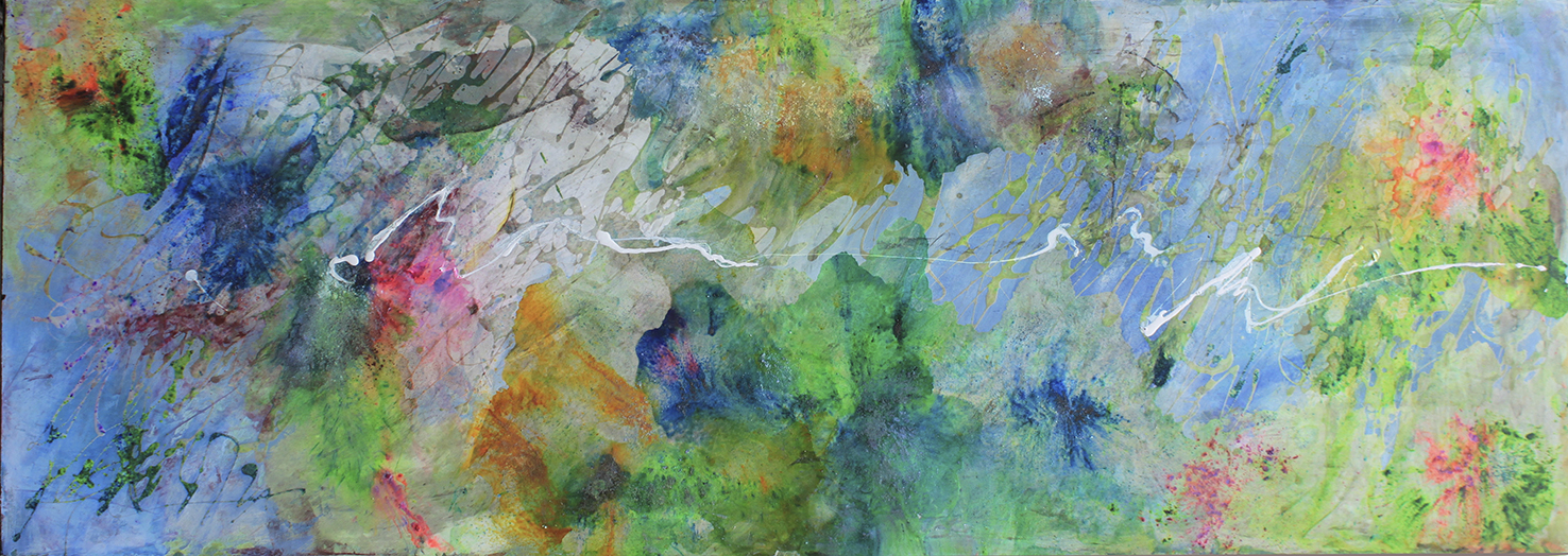 Les lignes symbolisent ces liens et les couleurs, la joie de se savoir sans cesse en devenir. Notre regard évolue, chargé du pouvoir que l’instant présent nous procure, et nous aide à retrouver ce contact avec la source de notre existence, celle qui nous transporte vers cette vaste notion d’Univers, unis vers...